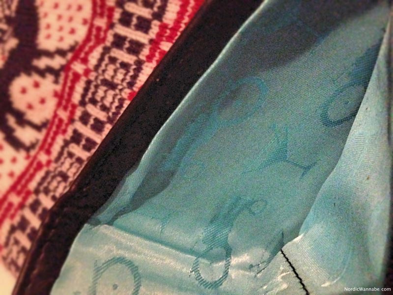 Ansonsten ist das Portemonnaie sehr schön. Es ist schwarz und hat das typische Innenfutter mit dem Traktor von Mooods of Norway in hellblau.  Links sind vier Einstecktaschen für Karten und rechts ist eine kleine Tasche für Münzen. Auf beiden Seiten befinden sich dahinter Einschübe für Ausweis und Co. In die längliche Tasche haben Scheine Platz.