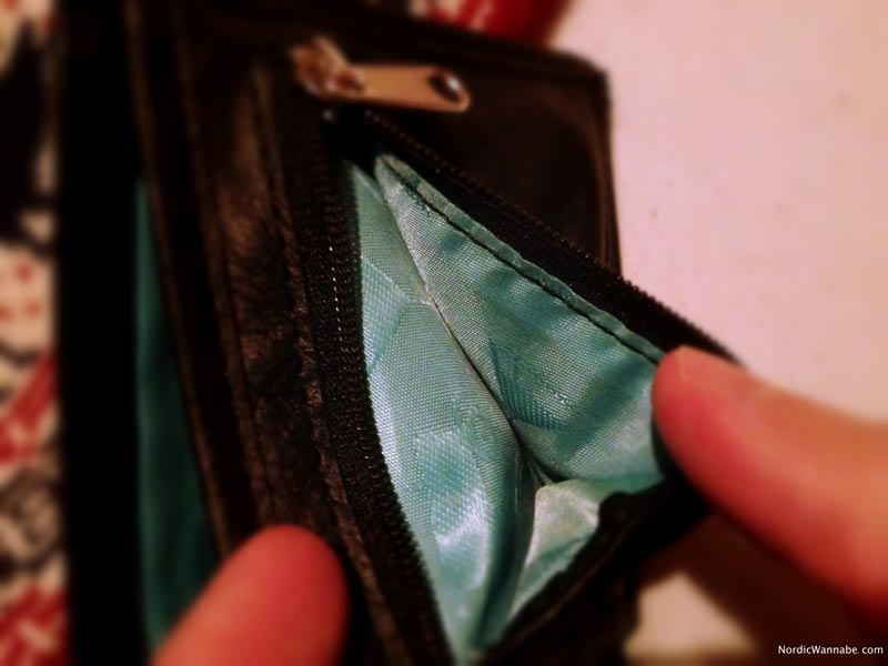 Wohin nur mit dem Kleingeld? Diese stellt sich ganz schnell bei dieser Geldbörse von moods of norway. Denn hier ist nicht viel Platz für Münzen, denn in Norwegen bezahlt man fast alles per Kreditkarte. Egal, ob Busticket oder ein Kaffee. Alles wird bargeldlos bezahlt. Daher wundert man sich sehr über das kleine Fach für Münzen.