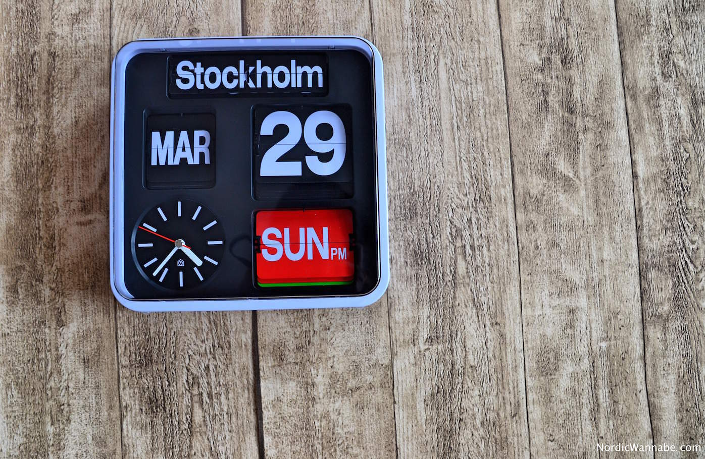 Diese Uhr „FLAP“ ist meine absolute Lieblingsuhr. Seit vielen Jahren stand sie auf meiner Wunschliste und und neulich habe ich sie geschenkt bekommen. Vielen Dank an den unbekannten, mir aber bekannten, Spender 🙂 In Köln durfte ich anfang des Jahres schon mal einen Blick auf sie werfen. Sie ist perfekt für NordicWannabes, denn sie zeigt „Oslo“, „Copenhagen“ und „Stockholm“ an. FLAP stammt von Habitat und kostet 99,00 Euro.