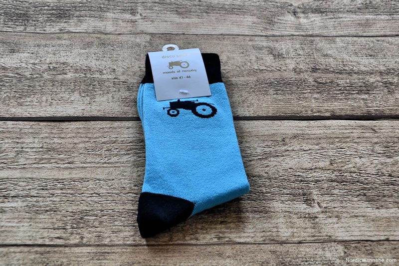 Sie gibt es in vielen Farben und oft gibt es Rabatt, wenn man zwei kauft. Deshalb finden sie immer den Weg in meinen Kleiderschrank. 🙂 Vorne gibt es den typischen Traktor und hinten die obligatorische Tanzanleitung. Norweger tanzen wohl gern. 🙂