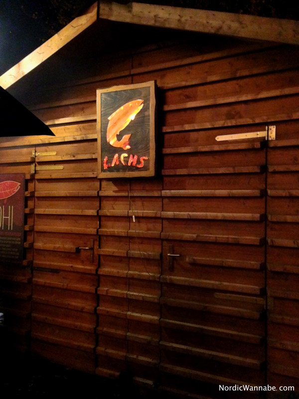 Lachs im Brötchen 5,00 Euro, Lachs im Robbenbrot 5,00 Euro & sahnige Lachssuppe 6,00 Euro. Wer großen Hunger hat, kann einen Lachsteller essen für 10,00 Euro mit Flammlachs, Kartoffelsalat, Tomate, Gurke, Zitrone, Brot und finnischer Fischsauce. Riista (Wild) gibt es auch in Form einer leckeren Elchwurst mit Teersenf-Sauce und Preiselbeeren. Sehr lecker. Ich habe zum ersten Mal Elch gegessen. Er ist vom Geschmack vergleichbar mit Krakauer. 🙂 Der Flammlachs im Brötchen war auch sehr lecker, doch das Fleisch war etwas wenig und der Salat war nicht so passend. Aber Geschmäcker sind ja verschieden.