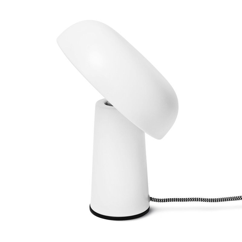 Diese Lampe gab es bereits im Dezember im Metall-Look. Jetzt kommt sie schlicht in weiß und schwarz daher. Ich konnte sie bereits im Dezember in Oslo angucken und ich muss sagen, dass sie für den Preis von je 20 Euro sehr cool aussieht. Manche fragen sich vielleicht, wie das mit dem schwenkbaren Lampenschirm aussieht. Der Schirm wird direkt auf die Glühbirne geklemmt mit zwei Klemmen und kann dann nach Bedarf bewegt werden. So ist sie perfekt als Lese- oder Nachttisch-Lampe. Die Lampe ist 18 Zentimeter hoch. Mit ihrer Schlichtheit passen die Lampen gut in das skandinavische Design.