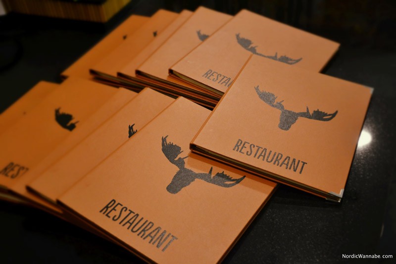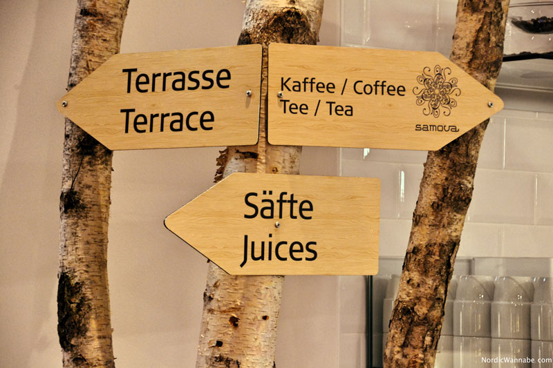 Es gibt viel Hölzer, Elche, Scandic Design. Was will man mehr? Es sieht wirklich so aus, wie einem Einrichtungsmagazin. Die Räume im Untergeschoss werden als Bar, Restaurant und Frühstücksraum genutzt. Schilder an Birkenstämmen weisen den Weg. Wie gesagt, das Zimmer war toll, aber das hier ist wirklich der Hammer. Ein Höhepunkt für jeden Skandinavienfan ist der beleuchtete Elchkopf. Er wacht über das Frühstücksbuffet. 🙂