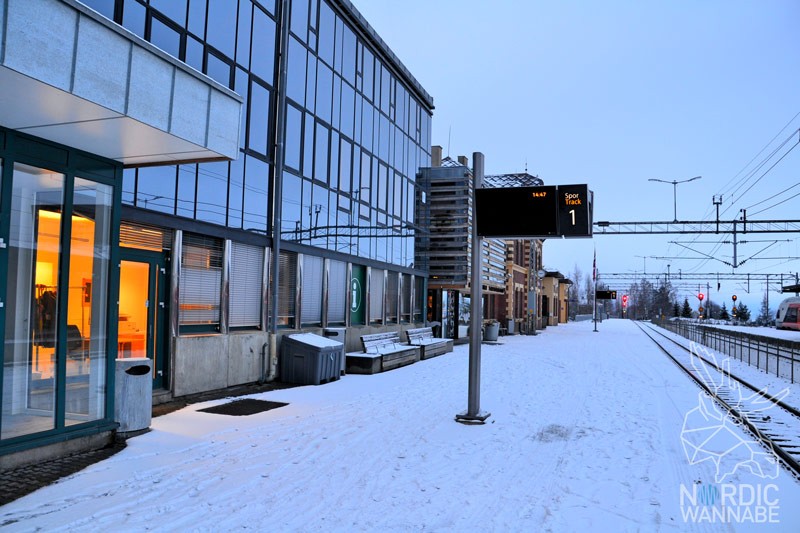 Ich bin mit dem Auto von Oslo mitgefahren. Das sind ungefähr 180 Kilometer pro Strecke in Richtung Norden. Mitten im Winter hat die Fahrt sehr lange gedauert, aber sie hat sich gelohnt. Schon weniger Kilometer außerhalb von Oslo gab es viel Schnee. Tannenwälder und Berge mit Schnee. Toll. Die erste Station in Lillehammer war der Bahnhof. Denn den sieht man oft in der Serie Lilyhammer.