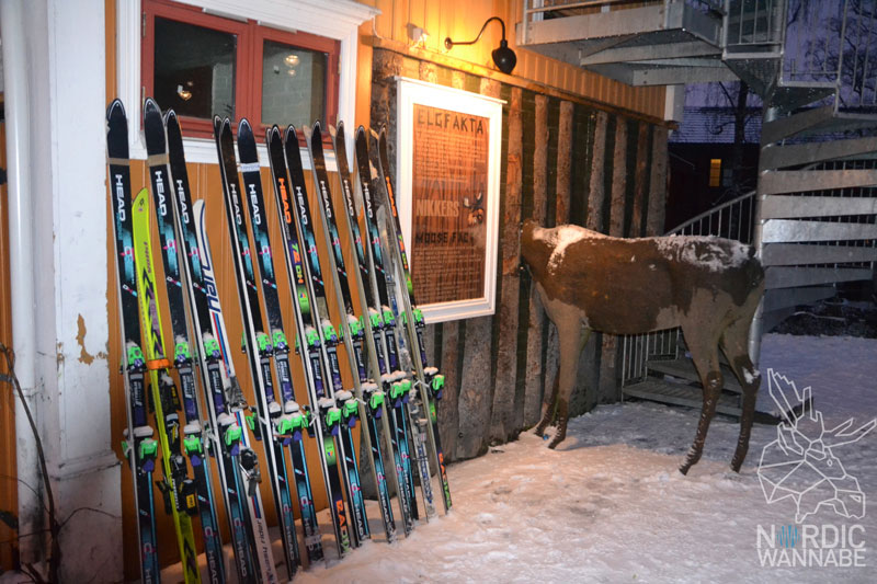 Auch hier sieht man wieder ein paar Skier und einen Elch, der durch die Wand schaut. Coole Idee! Nicht weit von hier ist auch das Gebäude, wo der Mafioso sich um seinen Papierkram kümmert und die Unterlagen für die Eröffnung seiner Bar haben möche.