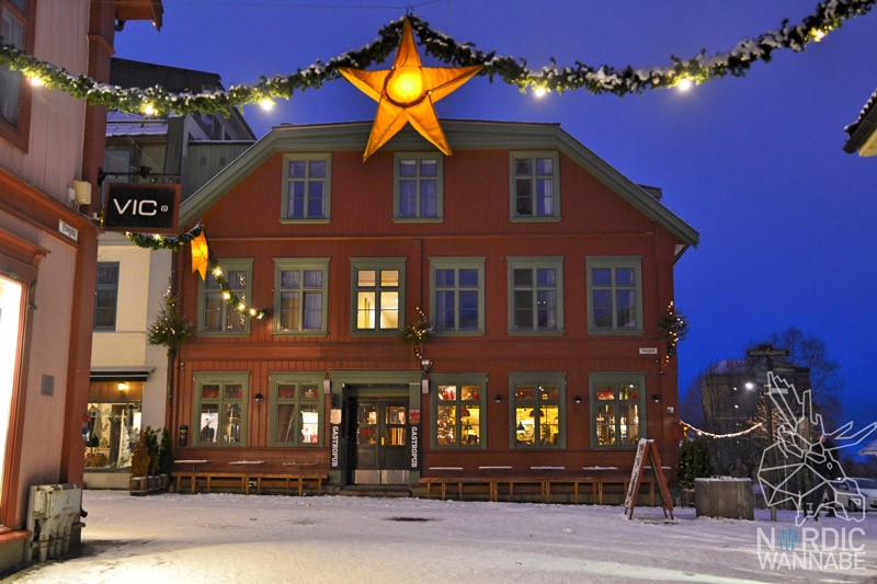 Gleich um die Ecke ist die Storgata, eine lange Einkaufsstraße mit vielen kleinen bunten Holzhäusern. Also diese Straße ist so wunderschön. Ich war ja nach Weihnachten da und deshalb war noch alles so prachtvoll geschmückt. Die Straße erinnerte mich total an diese Straße mit Holzhütten in dem Weihnachtsfilm mit Pippi Langstrumpf. 🙂