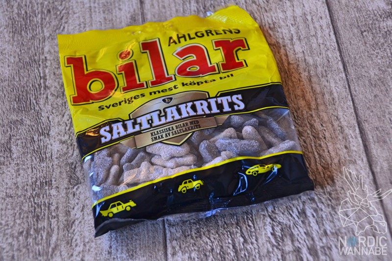 „AHLGRENS bilar“ sind wohl Schwedens meist verkaufte Autos und nicht Volvo. Es gibt verschiedene Sorten. Diese hier ist mit Salzlakritz. Es sind kleine weiche Lakritz-Autos mit Salz. Sie stammen ebenso von Cloetta aus Malmö. 100 Gramm haben 347 Kilokalorien.  130 Gramm sind in dem Beutel enthalten. Leider auch mit Gelatine.