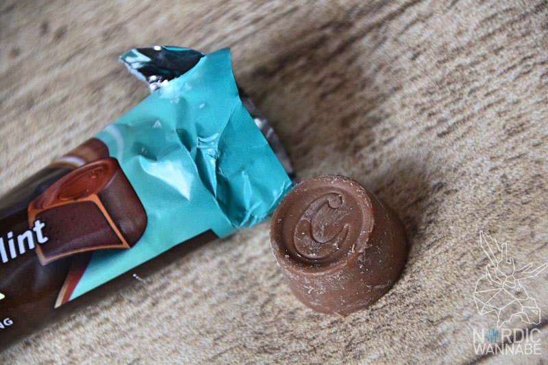 Schokolade von Center ist gefährlich. Die gibt es mit Lakritz, Karamell und Mainz. Ganz schlimm. Sie machen süchtig. 🙂 In Deutschland kennt man diese Rollen mit Marabou-Schokolade. Die sind auch so schrecklich. Diese Center-Rolle Schokolade mit Pfefferminzgeschmack schmeckt sehr gut. Sie stammt von Cloetta mit 78 Gramm. Doch man darf von dieser kleinen Köstlichkeit nicht zu viel essen: 479 Kilokalorien stecken in 100 Gramm Schokolade.