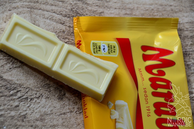 Kommen wir zu der wohl leckersten Schokolade der Welt: Marabou. Ich habe Euch immer wieder mal leckere Sorten vorgestellt, aber diese ist der absolute Hammer. Weiße Schokolade (Via choklad). Bisher kannte ich nur die dunkle Milchschokolade mit Lakritz, Oreo, Vollmilch, Pfefferminz usw. Aber weiße Schokolade war mir bisher unbekannt. Ich fand sie in einem Supermark in Kopenhagen. Und sie schmeckt so richtig gut. Wenn man schon die Verpackung aufreißt, riecht sie unverschämt lecker. Die Tafel hat 185 Gramm. Und 100 Gramm haben 535 Kilokalorien. 🙂