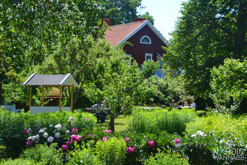 Wie gesagt, von außen ist es unscheinbar. Und hier ganz nebenbei auch mal ein Foto des XC90, der von Volvo für den Roadtrip zur Verfügung gestellt worden ist. Er passt gut in die Umgebung, oder? Es ist unglaublich, wie viele Schweden einen Volvo fahren. Nun gut, ich will nicht vom Thema abschweifen. 🙂 Der Garten hat ein Freilichtmuseum, eine Bühne, ein Café und viel Grünfläche zum Relaxen. Besonders in stressigen Zeiten ist es wichtig sich auf sich selbst zu konzentrieren und Energie zu sammeln. Das kann man hier ganz gut, schaut Euch mal die Bilder an: