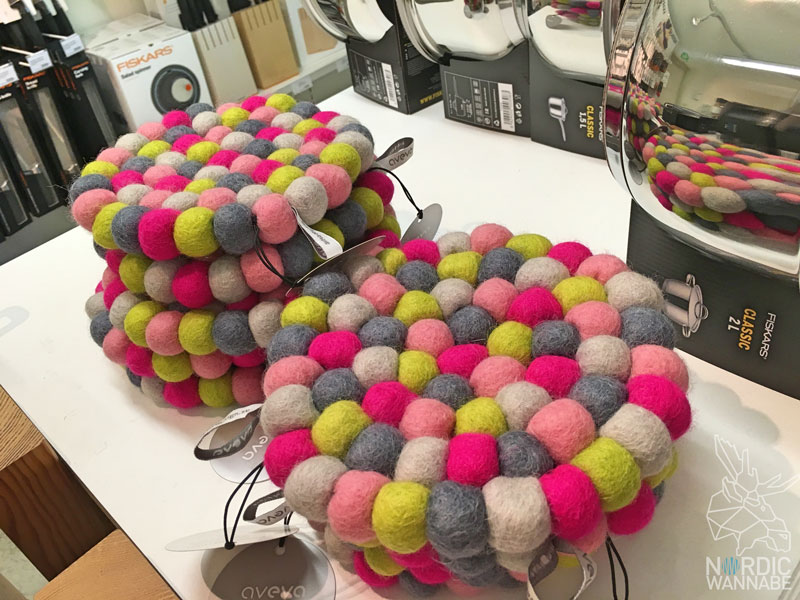 Es gibt Geschirr von Iittala aus Finnland, Geschirr und Besteck von den Moomins, Topfuntersetzer von Areva und die tollen Handtücher von Ekelund. Natürlich gibt es noch viel mehr. Die Preise waren jetzt nicht so tief, dass man dort groß shoppen kann. Aber ein paar Schnapper sind dabei.