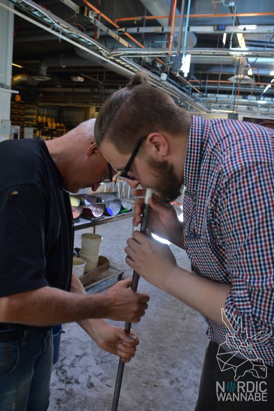 Zurück zum Glas: Zunächst stand ich dem Thema „Glas“ skeptisch gegenüber, denn irgendwie bin ich mehr der Holz-Typ. Auf Glas lege ich keinen großen Wert. Doch als ich dann im Glascenter war und selbst aus einem Glasklumpen eine Schüssel herstellen durfte, war ich sehr beeindruckt und habe gemerkt, was man alles mit dem Material erstellen kann. Lars Andersson ist Eigentümer des Kosta Glascenters. Er hat es sich zur Aufgabe gemacht, den Menschen Glas näher zu bringen und zu zeigen, wie viel Handwerk darin steckt. Er veranstaltet Workshops, Events und man kann auch bei Ihm Glas blasen. Das ist ganz einfach und jeder Schweden-Tourist schafft das. Einfach bei ihm vorab reservieren und los gehts. 🙂