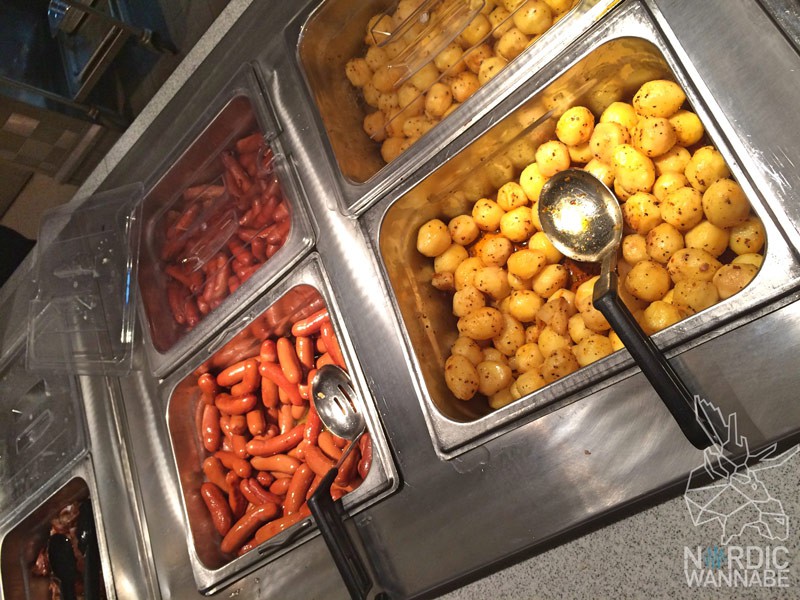 Das Essen war für eine Schiffsküche grandios und kann beispielsweise mit dem ColorLine-Essen mithalten und dieses sogar übertreffen. Es ist wirklich für jeden was dabei. Und ich kann das gut beurteilen, denn ich bin wohl der schwierigste Esser der Welt. Das Büffet war auf jeden Fall besser als das Mittsommer-Büffet im Hotel Hehrne in Vänersborg. – Es gab Brote, Käsesorten, Wurst, Eier, Garnelen und Flusskrebse, Salat, Hering und warme Speisen, wie Lasagne, Lachs, Kötbullar, Kartoffeln und und und.