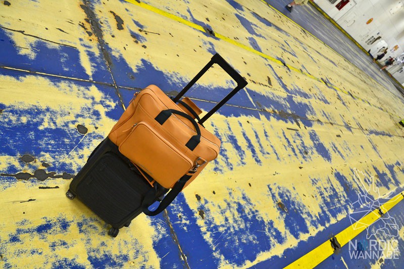 Hier seht Ihr ein paar Impressionen vom Inneren der Stena Scandinavia. Es gibt zwei Etagen für Autos und LKW’s – und natürlich meinen Koffer :-). Wer übrigens als Passagier, ohne Auto auf das Schiff kommt, kann sich einen Willkommensschnaps abholen, wenn er über die Gangway das Schiff betritt: