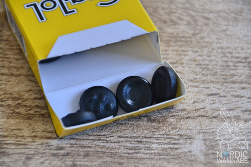 Wer von Euch kennt Spunk-Lakritz aus Dänemark? In der gleichen Verpackungsgröße gibt es die extrem salzigen Lakritz-Pastillen aus Ballerup, die Ga-Jol heißen. In Dänemark scheint es viele Sorten zu geben. Die Packung mit 20 Gramm Salzlakritz hat Prägungen ist perfekt für die Tasche. 100 Gramm enthalten 170 Kilokalorien. Man sollte nicht zu viele gleichzeitig essen, denn sie können abführend wirken. 🙂