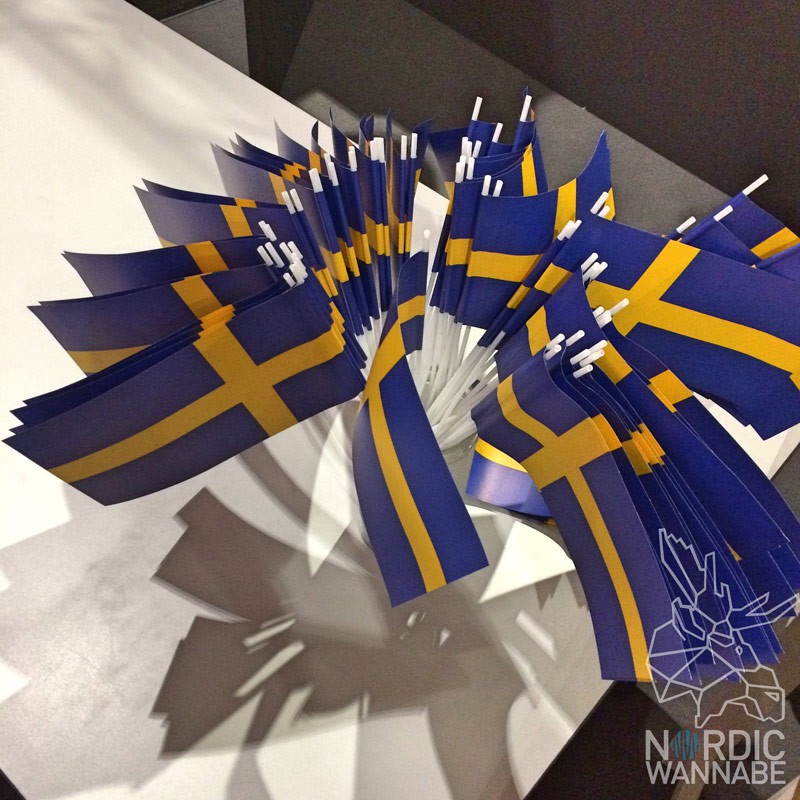 Plötzlich stolperte ich über ein Bündel mit schwedischen Papier-Fähnchen. Was sollte das? Ok, ich befand mich gegenüber der IKEA Showküche. Hier wurde gekocht und getalkt.