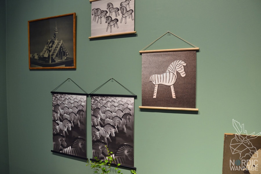 Etwas unscheinbar, aber dennoch hübsch war die Wanddeko am Rosendahl-Messestand. Inspiriert von alten Geografiekarten in Klassenzimmern gibt es drei Drucke mit dem Zebra-Klassiker auf Segeltuch im Eichenholzrahmen. So kann man sich auch etwas Retro-Design von Kay Bojesen an die Wand zaubern. Sehr hyggelig.
