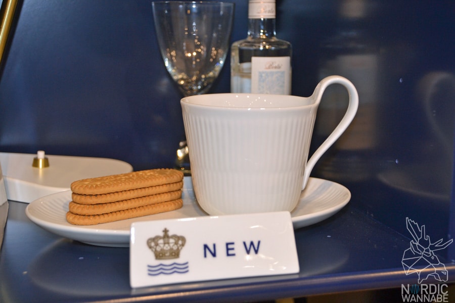 Bei Royal Copenhagen war ich in diesem Jahr das erste Mal zu Besuch. Bis auf eine Aufnahme waren die Damen am Stand sehr verhalten. Es wurde auch ein kleines Foto von mir gemacht mit einer Tasse in der Hand, aber ich habe bis heute nicht verstanden, was der Sinn dahinter war. Denn es gab kein Gewinnspiel dahinter oder irgendwas. Aber gut, als Blogger macht man ja (fast) alles mit. 🙂 Der Stand war sehr schön, royal eben, und in dunkelblau gehalten. Eine äußerst nette Finnin hat mir dann noch etwas über die Neuheiten erzählt. Oben in der Galerie seht Ihr zum Beispiel einen Teller mit Goldkante aus der Flora Danica-Serie, die auch im Kopenhagener Schloss bei der Königsfamilie zu finden ist.