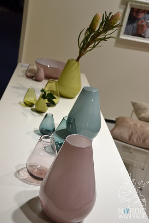 An was erinnern Euch die Vasen und Schüsseln oben in der Galerie aus der neuen Falla-Serie? Richtig, sie wurden einem Tropfen nachempfunden und auf unterschiedlicher Höhe dann getrennt. Die Schüssel ist quasi der untere Teil des Tropfens und somit harmonieren alle Elemente auch miteinander. Inspiriert wurde das Design des Glases von der arktischen Flora und Fauna. Ich mag die leichten Farben und die verschiedenen Variationen sehr. Mit blau und grün passen sie auch zu den Trendfarben des Jahre. Jedes Produkt ist ein Unikat, denn es ist Mundgeblasen.