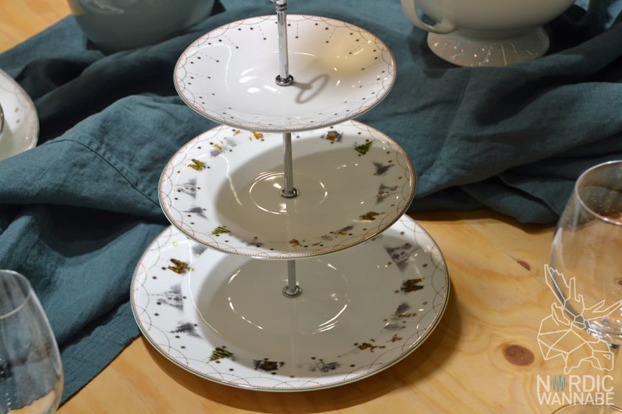 Es erinnert mich auf den ersten Blick sehr an das Weihnachtsgeschirr von Royal Copenhagen, aber es ist doch anders: Das Weihnachtsgeschirr von Wik & Walsøe. Man erkennt vielleicht, dass es auch hier so kleine Anhänger gibt und goldene Elemente. Es gibt Rehe, Engelchen und kleine Bäume. Lediglich, im Vergleich zur dänischen Variante, fehlen hier die Tannenzweige. Die Julemorgen-Kollektion für Weihnachten bietet alle Möglichkeiten, die man für eine weihnachtliche Tafel braucht: Teller, Tassen, Schüssel, Suppenschüssel, Untertassen und große Teller zum Servieren.