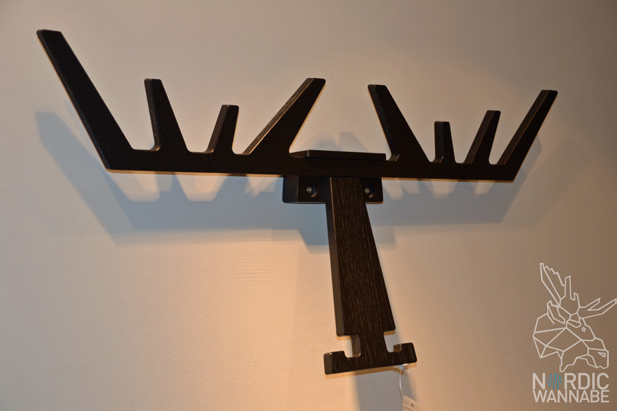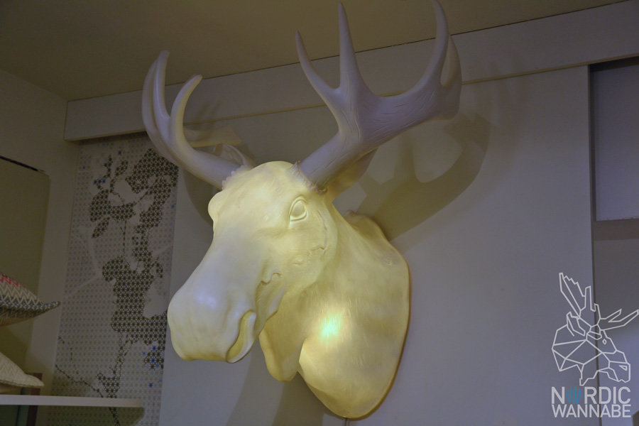 Was ist typisch norwegisch? Ganz klar: Elche. Die gibt es natürlich auch. Den Cato-Knagg-Elch aus Holz gibt es in verschiedenen Varianten ab 3500,00 Kronen. Das Design stammt von Pur Norsk. – Dann war ich ganz überrascht, als ich den leuchtenden Elchkopf Moo sah, den ich liebe. Ich habe ihn zum ersten Mal im Scandic Hotel in Berlin am Potsdamer Platz gesehen und dann noch mal im Design Design Stockholm in Frankfurt. Er kostet leider um die 1000 Euro. Aber es ist eine tolle Leuchte.