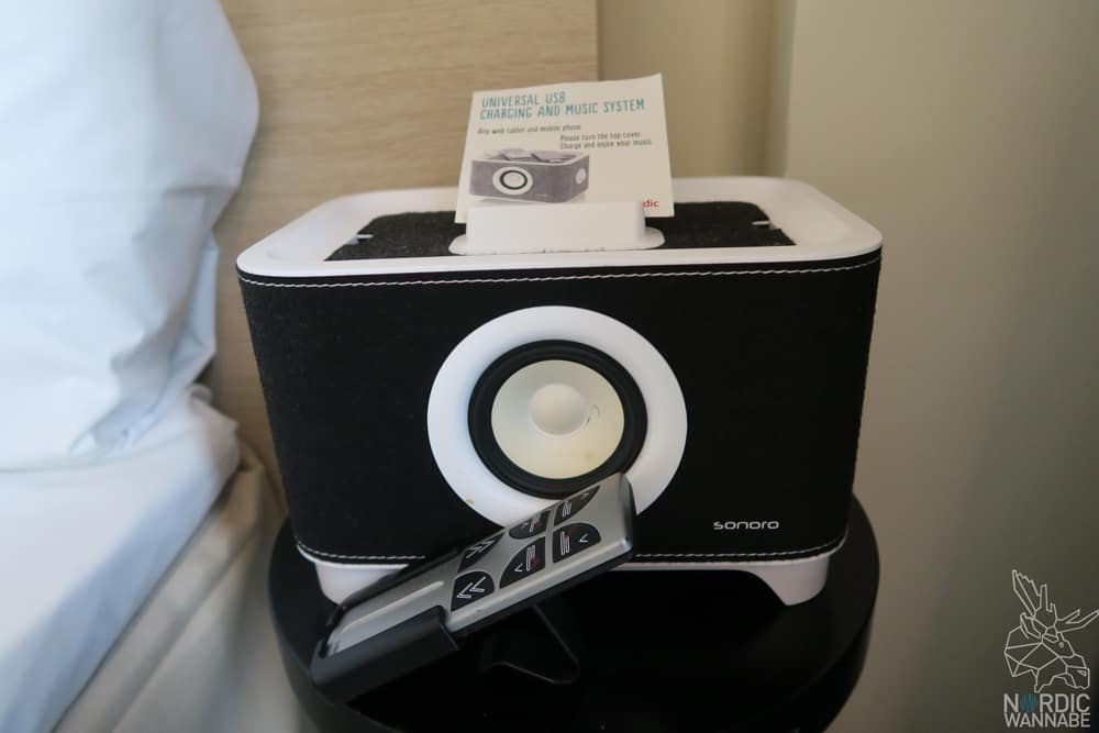 Ich glaube, dass das Zimmer ein Superior-Zimmer war. Deswegen gab es zum Beispiel eine kostenlose Mini-Bar und eine Senseo-Kaffeemaschie. Aber auch bei einem normalen Zimmer habt Ihr eine Flasche Wasser kostenlos inklusive sowie ein Kingsize-Bett. Bei mir waren die Betten verstellbar in der Höhe, aber drauf gehe ich hier nicht ein, weil ich nicht glaube, dass das Standard ist. Es gab außerdem einen Wasserkocher für Tee/Kaffee und ein Bügelbrett mit Bügeleisen. Neben dem Bett stand eine Musikbox von Sonoro. Aber die habe ich nicht ausprobiert. Wie war das Zimmer? Super! Kostenloses WLAN, richtig gut sauber und viel Platz. Das Design des Zimmers ist sehr ansprechend. Kein Teppich, was ich einfach mag in Hotels! Das Holz ist schön hell und zieht sich von der Garderobe über den Schreibtisch bis zum Bett.
