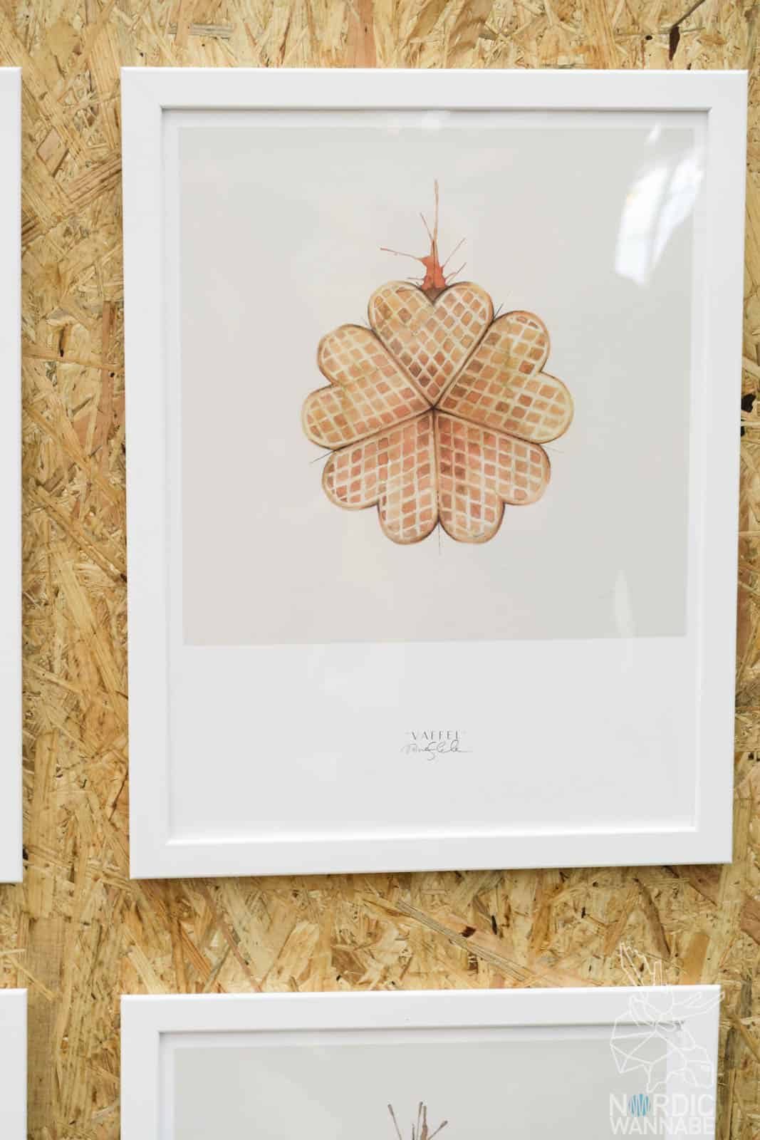 EMMESELLE ist eine neue Marke aus Norwegen, die total hyggelige Dinge produziert. Es gibt wunderschöne Bilder und Postkarten mit Waffeln drauf, Handschuhen, Skål und vielen anderen Hygge-Dingen. Hinter den Zeichnungen steckt die Illustratorin Mona Stenseth Erlandsen.