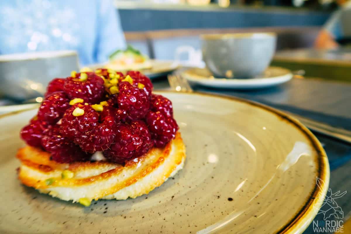 Dieses kleine und feine Café ist etwas außerhalb des Zentrums. Man kommt aber sehr leicht mit den öffentlichen Verkehrsmitteln dorthin. Es ist sehr gemütlich eingerichtet mit hellen Farben, viel Holz und schönen Fliesen am Boden. Auch hier gibt es, wie bei allen anderen Cafés Zimtschnecken, Sandwichses und andere Snacks. Alles ist sehr frisch zubereitet und gesund. Das Lokal geht über zwei Etagen. Im ersten Stock befindet sich der Tresen, wo man seine Bestellung aufgeben kann und es gibt eine kleine Ecke mit Skandi-Produkten, die man kaufen kann. Neben Schmuck findet man auch Deko-Artikel, wie Kissen, Felle und Kerzen. Sehr hyggelig. Eine schmale Treppe führt nach oben, wo es auch noch Platz zum Essen und Trinken gibt. Ich hatte eine Zimtschnecke und einen leckeren kalten Kakao, den sie extra für mich angerührt hatten. (Denn warme Getränke sind nicht so meins).