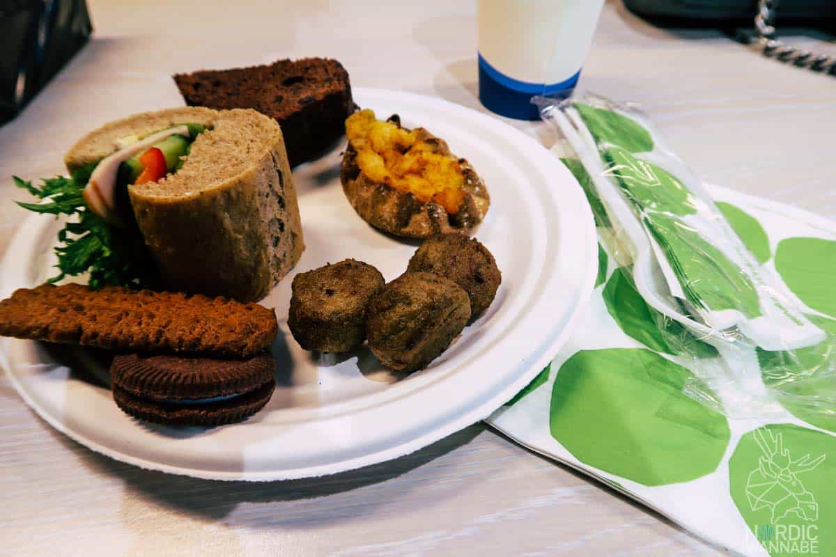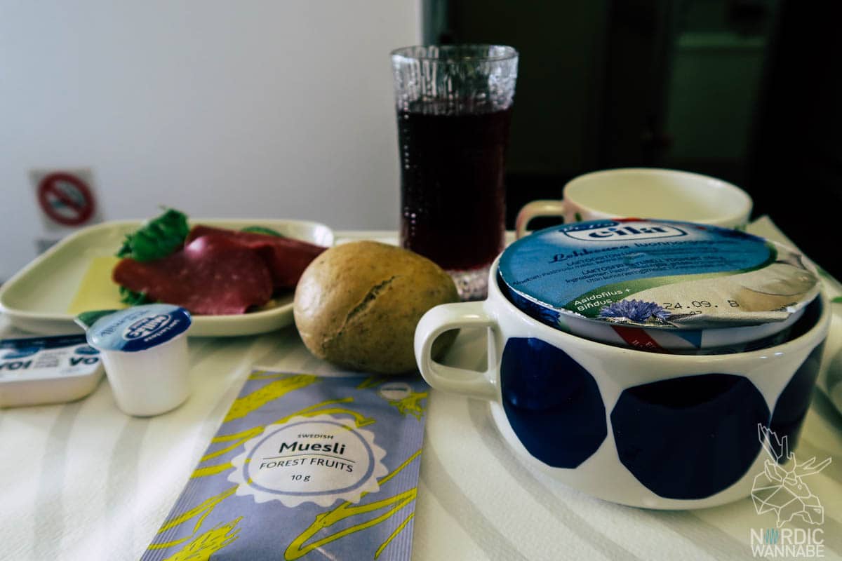Und dann gab es noch etwas, was Fluch und Segen zugleich war. Man kann an Bord viele finnische Süßigkeiten kaufen von Fazer und leckere finnische Lakritz-Sorten. Und dann kann man noch zusätzlich im Katalog viele Skandi-Produkte bestellen, die man dann auf dem Rückflug auf seinem Sitz findet. Und da habe ich richtig zugeschlagen: ich habe mir Duschgel von Bad Norwegian, Finnische Creme, Schokolade, Lakritz, Mumin-Figuen und Blaubeersaft bestellt. Man bezahlt den Einkauf dann einfach auf dem Rückflug. Sehr praktisch, wenn man am Flughafen nicht viel Zeit hat und schon das Handgepäck voll ist. 🙂 Auf dem Rückflug bin ich dann einem Blaubeersaft verfallen. Ich weiß nicht, woran es lag, aber der war so lecker. Die Stewardess lachte schon und schenkte die ganze Zeit nach. Dann fragte sie, ob wir keinen Blaubeersaft hätten in Deutschland? Und ich antwortete: Nein, nicht so einen leckeren. Das Essen war auch sehr gut. Auf dem Hinflug hatte ich ein Mittagessen und auf dem Rückflug ein Frühstück.
