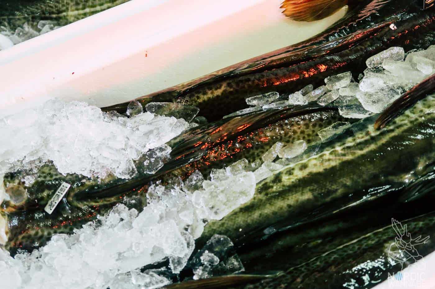 Wir haben auf den Lofoten gelernt, dass der Fisch komplett genutzt wird. Das Filet wird mit Eis gekühlt exportiert. Das Meiste davon geht nach Dänemark und von dort sicherlich auch zu uns nach Deutschland. Die Zungen und die Wangen des Fisches werden als Delikatesse gehandelt. Auch der Rogen und die Leber werden genutzt. Die Köpfe und andere Teile des Skreis werden getrocknet und nach Nigeria verschifft. Super, dass keine Reste wegkommen. – Wo Du den Winterkabeljau findest, erfährst Du am Ende des Textes.