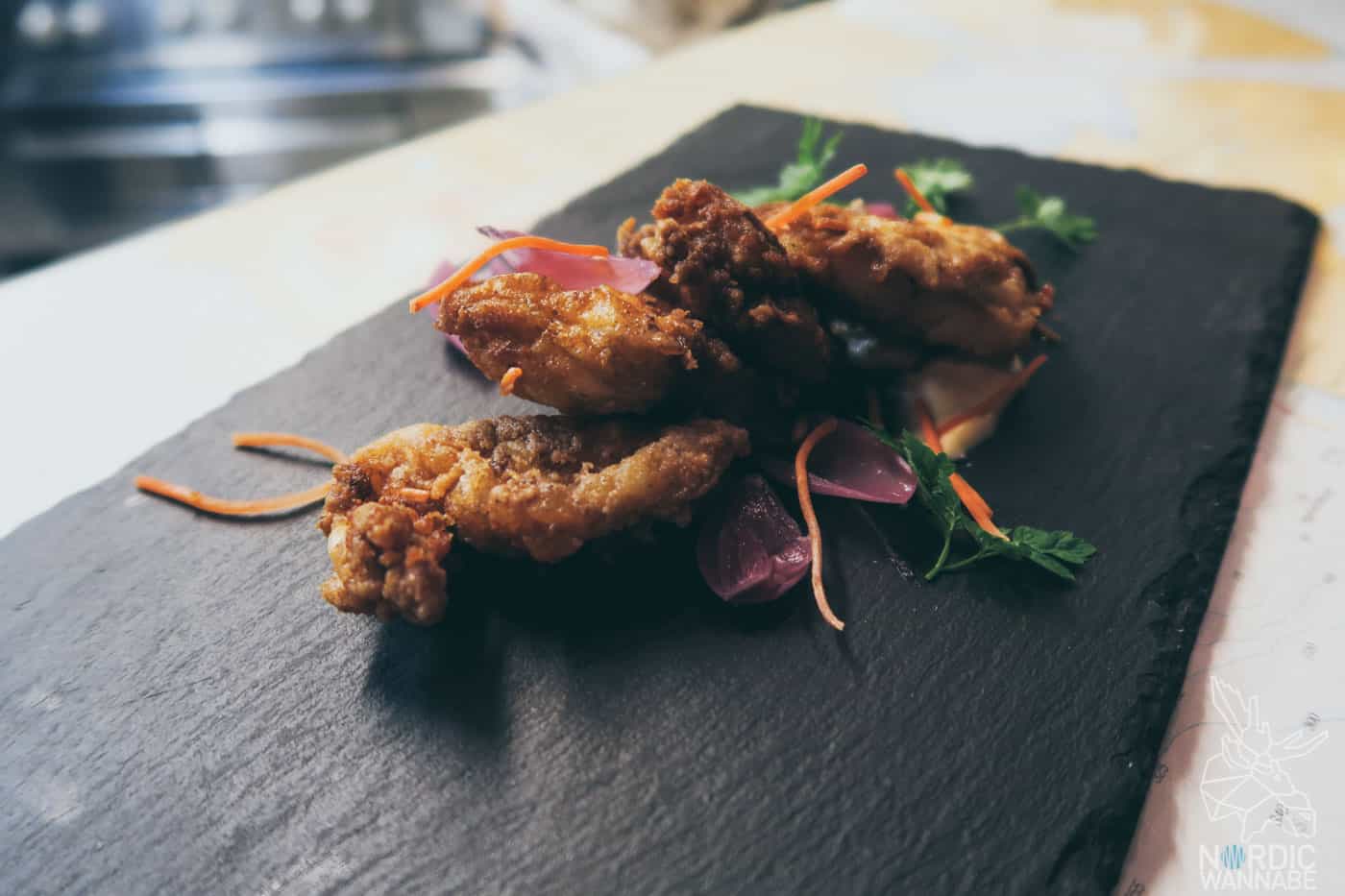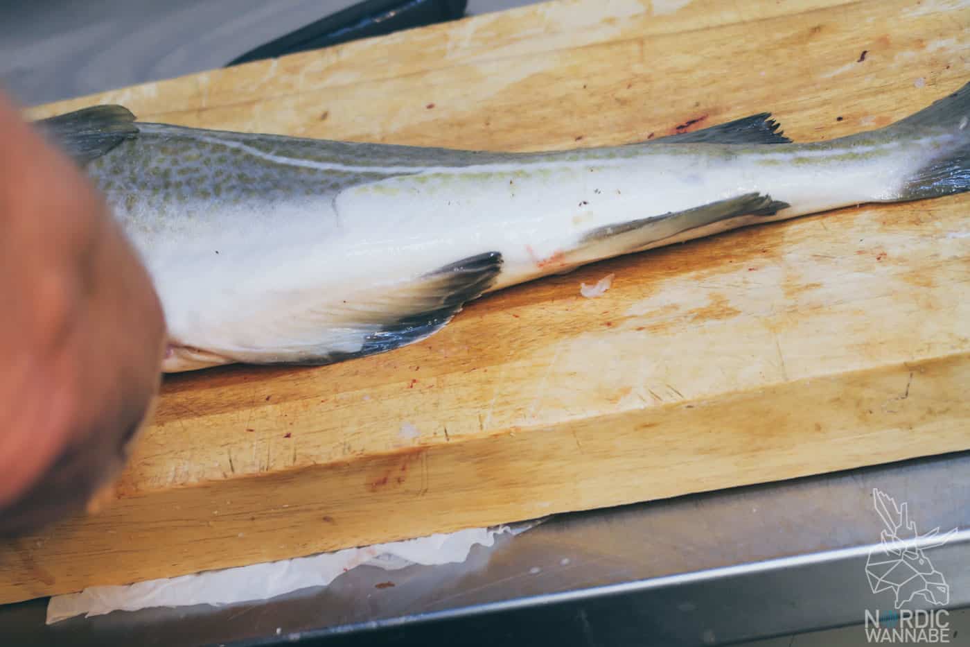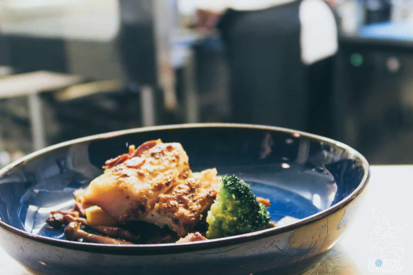 Am zweiten Abend waren wir im Restaurant „Full Steam“, was sich unterm Dach eines Industriegebäudes befindet in Henningsvær. Nachdem wir eine kurze Einführung zur Historie des Skrei-Fischens bekamen und uns der Meisterkoch zeigte, wie man richtig filetiert, gab es ein unglaublich leckeres Menü. Hier bekamen wir unzählige Gänge an Fisch und Meeresfrüchten aus Norwegen von Roy Magne Berglund zubereitet. Ich konnte viele Dinge probieren, die ich vorher noch nie auf dem Teller hatte. Das Highlight des Abends war allerdings unser selbst gefangener Skrei. Er war so unglaublich zart zubereitet, wie Butter.