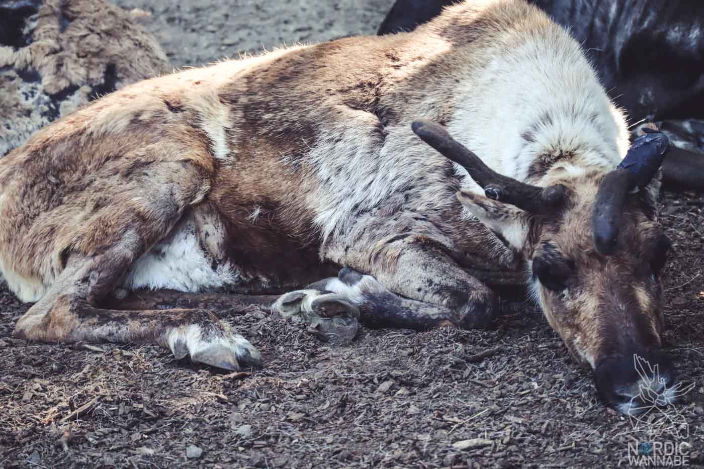 Natürlich habe ich meine kleinen Rentier-Babies schon im Zoo besucht und einige Fotos gemacht. Kennt Ihr das? Wenn man Tiere fotografiert, hat man am Ende immer mehr Fotos als man eigentlich braucht. Mich faszinieren Tiere und ich fotografiere sie gerne. Egal, ob Wale vor den norwegischen Vesterålen, Papageitaucher in Island oder Rentiere auf Spitzbergen. So war es auch dieses Mal im Zoo. Ich war ein paar Minuten bei den Tieren und danach war die Speicherkarte halb voll. Einige Fotos davon möchte ich hier kurz mit Euch teilen am Ende des Blogposts. Sie scheinen ein entspanntes Leben zu haben im Zoo, denn sie liegen gemütlich rum, obwohl sie genügend Gelände für den Auslauf haben.