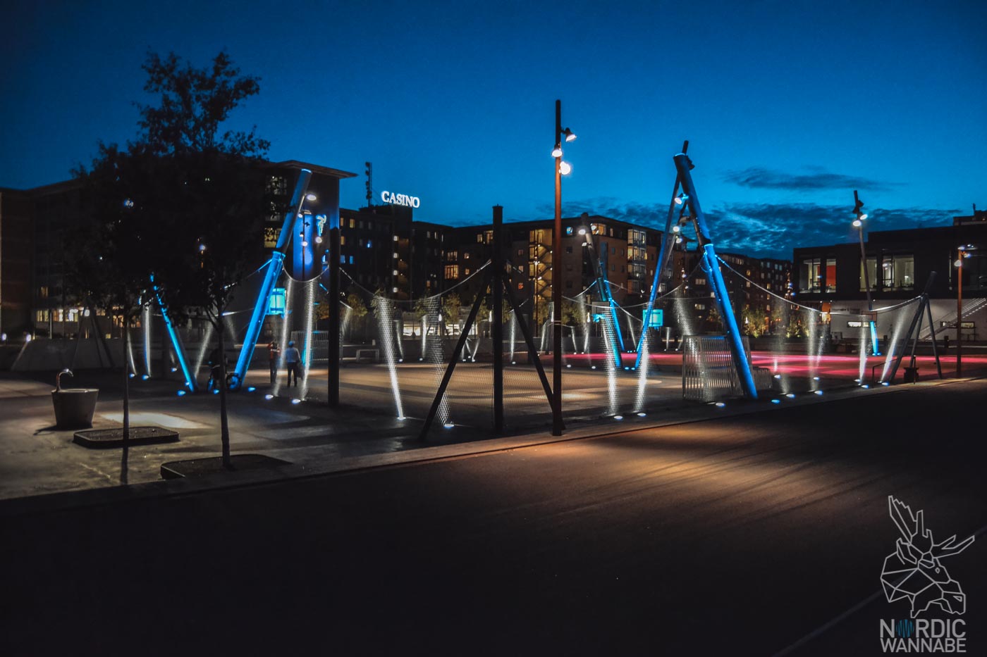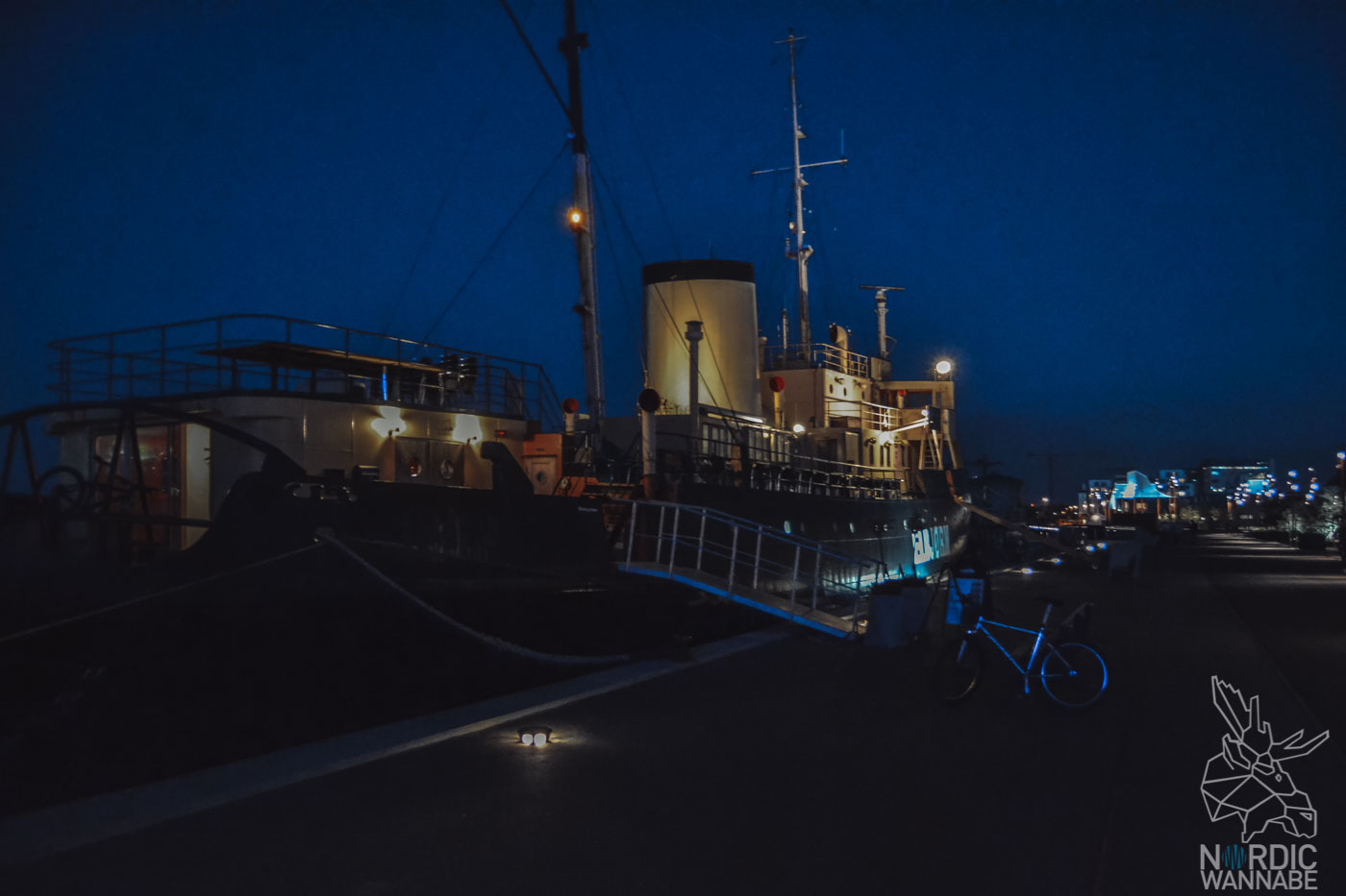 Aalborg liegt am Fjord? Jetzt denkt Ihr vielleicht, dass ich endgültig verrückt bin. Haha. Tatsächlich liegt Aalborg am Fjord, jedoch nicht vergleichbar mit den Fjorden in Norwegen. Hier ist es eher aufgrund der geringen Breite ein Fluß mit dem Namen Langerak – aber immer noch Teil des Fjords. Wie auch immer, nachdem ich eine halbe Tüte HARIBO verdrückt hatte, ging es ans Wasser. Ich war übermüdet und das blaue Licht hat mich extrem sentimental gemacht. Ich war endlich in Dänemark- das erste Mal – und bald auch in Norwegen das erste Mal. Es war einfach schön. Natürlich fand ich nichts mehr zu essen. Denn damals dachte ich noch: Nein, eine Pizza kaufen? Puh, die ist doch viel zu teuer. Spätestens in Norwegen habe ich dann verstanden, dass im Norden alles etwas teurer ist.