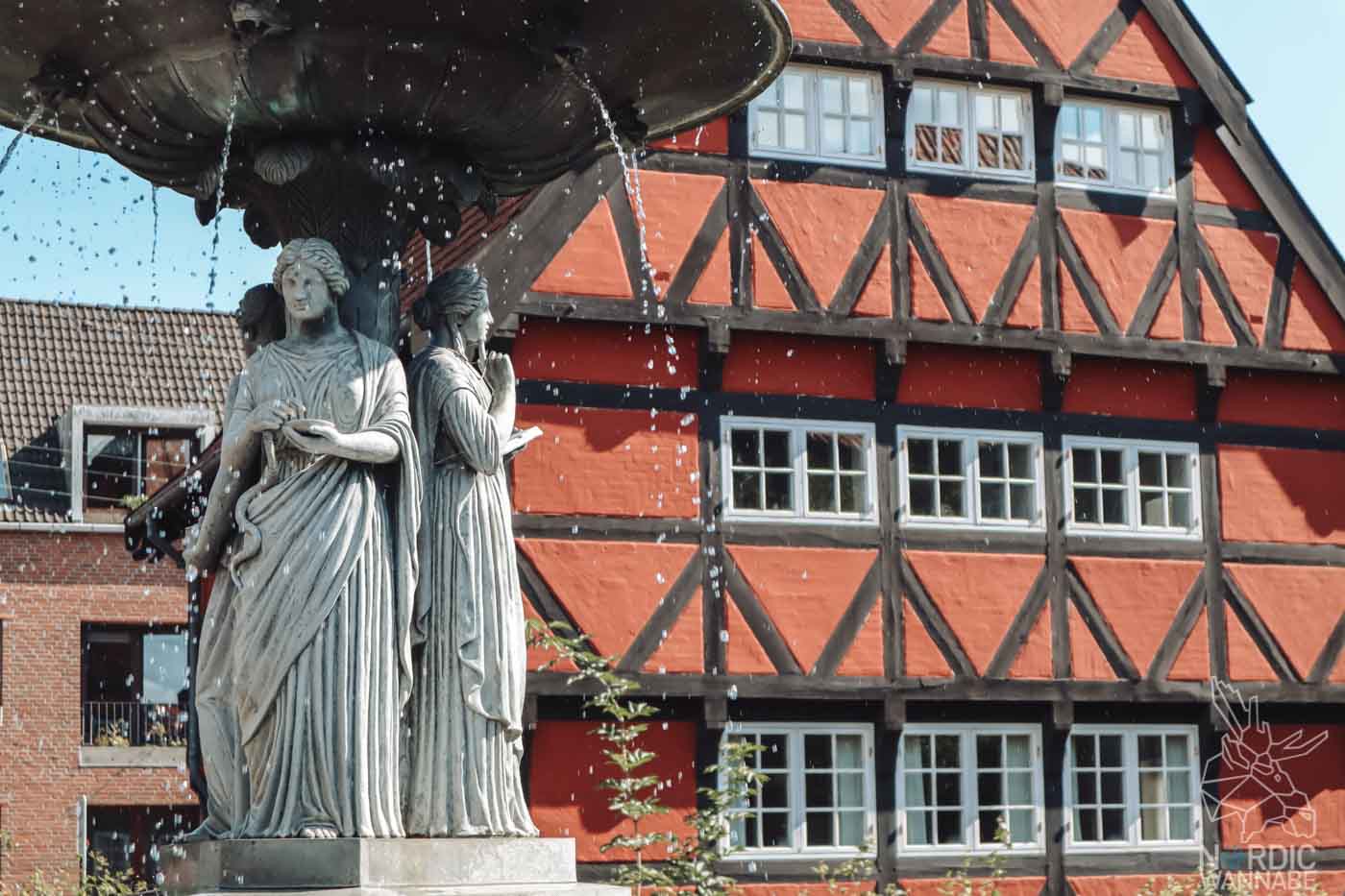 Doch Aalborg hat nicht nur moderne und urbane Street-Art zu bieten, sondern auch eine wunderschöne und idyllische Altstadt. Historische Fachwerkhäuser, und kleine Steinhäuser sorgen für wunderschöne Fassaden. Der schönste Platz ist um die Vor Frue Kirche herum. Die Peder Barkes Gade ist ein perfektes Motiv für Euren Instagram-Account. In der kleinen Straße reiht sich ein kleines Haus an das andere. Vor der Tür stehen Bänke, wachsen Blumen und stehen Fahrräder – sehr hyggelig. Ebenso ein tolles Fotomotiv ist der Springbrunnen Kayerøds Springvand – dieser steht direkt am Aalborg Staatsarchiv in der Arktivstræde 1.