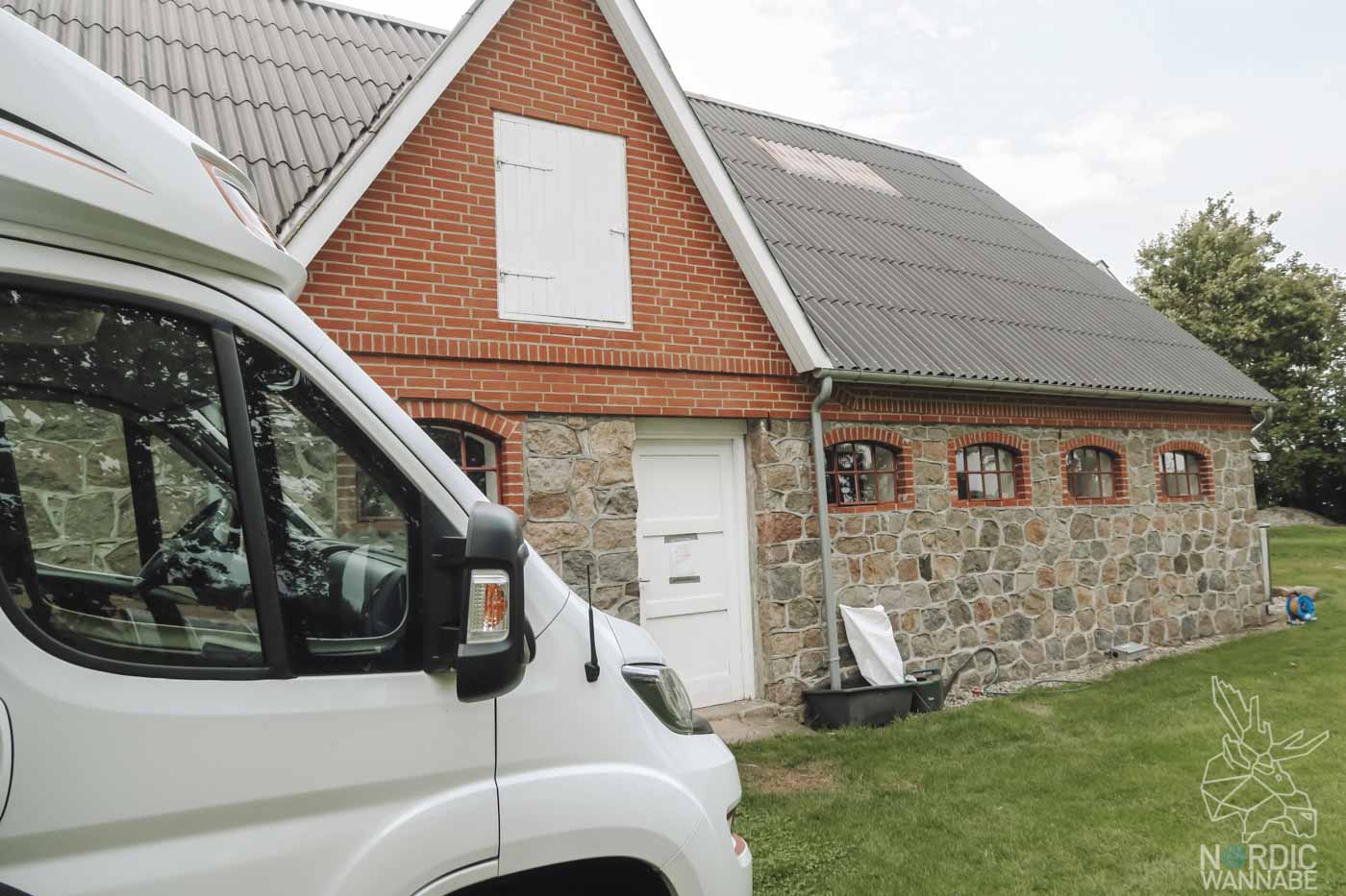 Für mich ging zu einem Weingut in Vamdrup. Ein richtig schöner Stellplatz. Ihr findet Ihn im Pintrip-Guide. Die Familie lebt in einem Haus auf dem Grundstück, dazwischen ist ein Gebäude mit Badezimmer, Shop und Wein-Probe. Und dahinter ist eine Wiese, wo man mit dem Wohnmobil stehen kann. Es gibt frisches Wasser, Strom und WLAN. Wie kann man diese Stellplätze buchen? Man ruft vorher kurz an und fragt, ob noch Platz ist. Und sobald man ankommt, grüßt man nett die Bewohner. So kommt man auch gut in Kontakt mit Locals. Große Hunde passen auf das Grundstück auf und Hühner gackern am Morgen. Es ist so wunderschön gewesen. In der „Butik“ könnt Ihr übrigens auch den Wein kaufen, frische Eier und selbst angebautes Gemüse. Der Wein soll übrigens sehr lecker sein. Diesen Stellplatz kann ich uneingeschränkt weiter empfehlen.