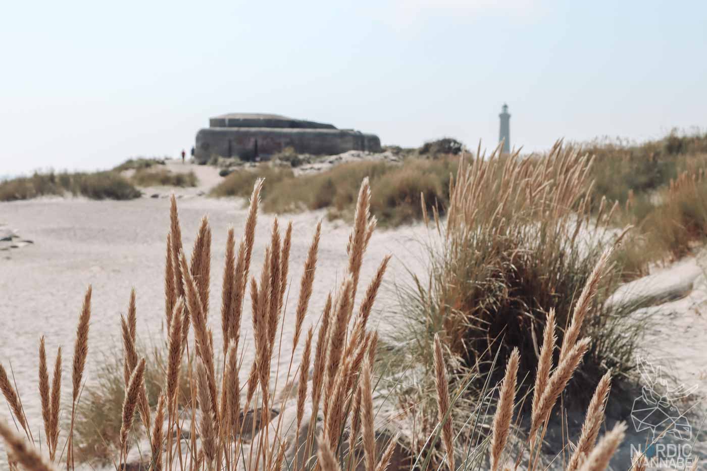 Auf dem Rückweg nutze ich den Weg am Meer entlang zurück zum Parkplatz. Von hier habt Ihr einen guten Blick auf den grauen Leuchtturm von Skagen (Der Grå Fyr). Falls Ihr Euch wundert, was das für ein Kasten dort am Strand ist? Das ist kein Kulisse von Star Wars sondern alter Bunker aus der Vergangenheit. Es gibt viele Bunker an der dänischen Küste. Wer sich dafür interessiert, wird große Freude haben. Ich mag lieber die Natur, die Dünen und einen Schluck kaltes Wasser direkt aus dem Rucksack, der nach der Strand-Wanderung auch ein wenig Sand mit nach Hause brachte als Erinnerung an diesen schönen Ort.