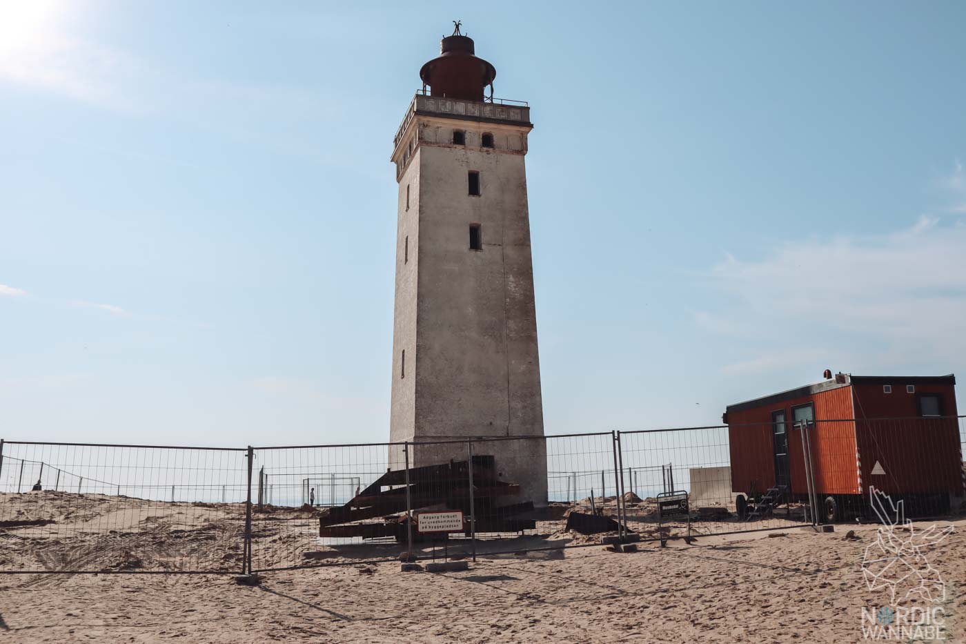An den Bildern könnt Ihr schon erkennen, dass es wichtig ist aus welchem Winkel man den Leuchtturm Rubjerg Knude Fyr fotografiert. Direkt davor sieht man all die Vorbereitungen für den Umzug. Aber wenn man sich vor die Düne stellt, bekommt das Fotomotiv die nötige Tiefe und Schönheit.