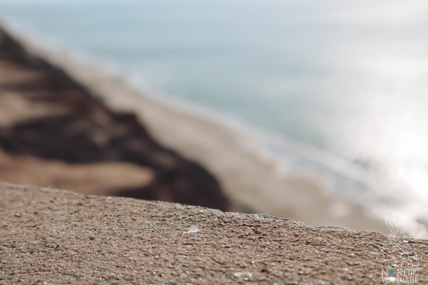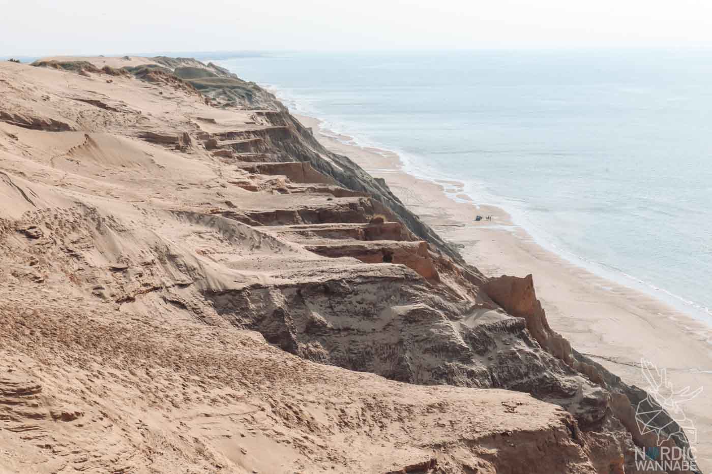 Doch der Leuchtturm selbst ist nur allein ein Highlight dort an der dänischen Ostsee-Küste. Schon allein der Blick von oben herab aufs Meer ist so wunderschön. Der Sand ist rot-gelb vom Gestein her. Allerdings sollte man ein wenig schwindelfrei sein, wenn man sich an den Rand traut. Und Ihr solltet bitte extrem aufpassen, dass Ihr nicht runterstürzt!