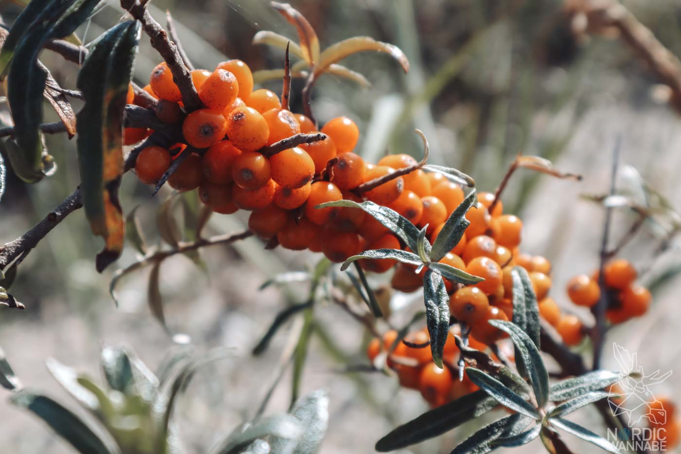 Insgesamt gibt es drei Möglichkeiten, um an den Strand zu kommen. Wer nicht gut zu Fuss ist, kann mit dem Trecker im Anhänger zum Meer gefahren werden. Das kostet ein paar Kronen, ist aber super bequem. Ihr könnt aber auch bis zum Strand wandern. Für diese Variante habe ich mich entschieden. Ich bin einfach den Weg gegangen, den auch die Trecker fahren. Tiefer Sand, kaum Wind und viel Hitze. Tolle Entscheidung. Haha. Der Weg kam mir endlos vor. Dafür war es schön still, man hörte nur die Natur und konnte viele Sanddorn-Sträucher entdecken. Es war interessant zu sehen, wie die Flora immer weniger wurde von kleinen Bäumen und Sträuchern bis man dann letztendlich nur noch Sand hat.