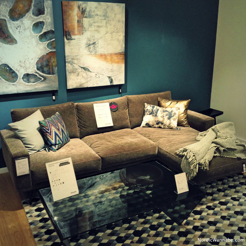Eigentlich wollte ich mir nur ein Sofa anschauen, was im Angebot war. Schnell kam der dänische Store-Manager, der uns sehr freundlich und kompetent beriet. Er zeigte die verschiedenen Größen des Sofas am PC und die vielfältigen Stoffe, die an einer Wand im Geschäft hängen. Im Vergleich zur anderen Kundschaft waren wir underdressed. Er bot uns aber trotzdem etwas zu Trinken an, es herrschte eine nette Atmosphäre. In anderen Läden wird man ja schon schräg angeschaut, wenn man mit Sneakern rumläuft. Es gibt das Vorurteil, dass solche Leute dann eh nichts kaufen. 🙂 Hier bei BoConcept ist es anders. – Da das Sofa aber nicht vor Ort verfügbar war, schaute ich mich noch etwas um. Hier meine Highlights: